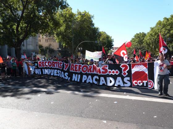 Una vez finalizada la actividad las personas asistentes, que habían sido convocadas entre otras organizaciones por CGT, Ecologistas en Acción, Juventud Sin Futuro, Cristianos de Base/Redes, Cristianos por el Socialismo, Asamblea Feminista, 15MSol, Attac, Plataforma de Afectados por Hipoteca, Decrece Madrid, Izquierda Anticapitalista, En Lucha,…, han formado un Bloque Crítico y se han manifestado por el paseo del Prado en dirección a la plaza de Colón.