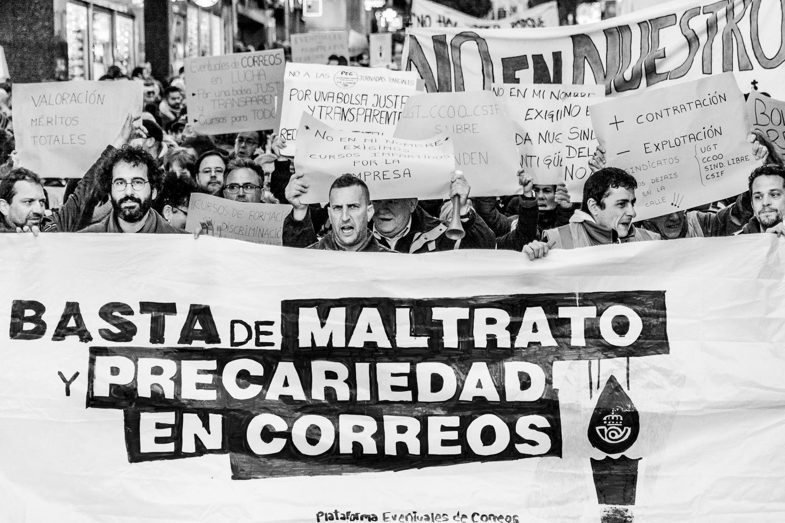 El sábado 2 de Diciembre tuvo lugar una manifestación estatal contra la precariedad laboral en Correos convocada por la PEC (Plataforma de Eventuales de Correos). Cientos de trabajad@res de Correos recorrieron protestamos por los abusos empresariales contra el personal eventual y la nueva regulación de las bolsas de empleo, que van a suponer un aumento de los contratos basura en Correos.