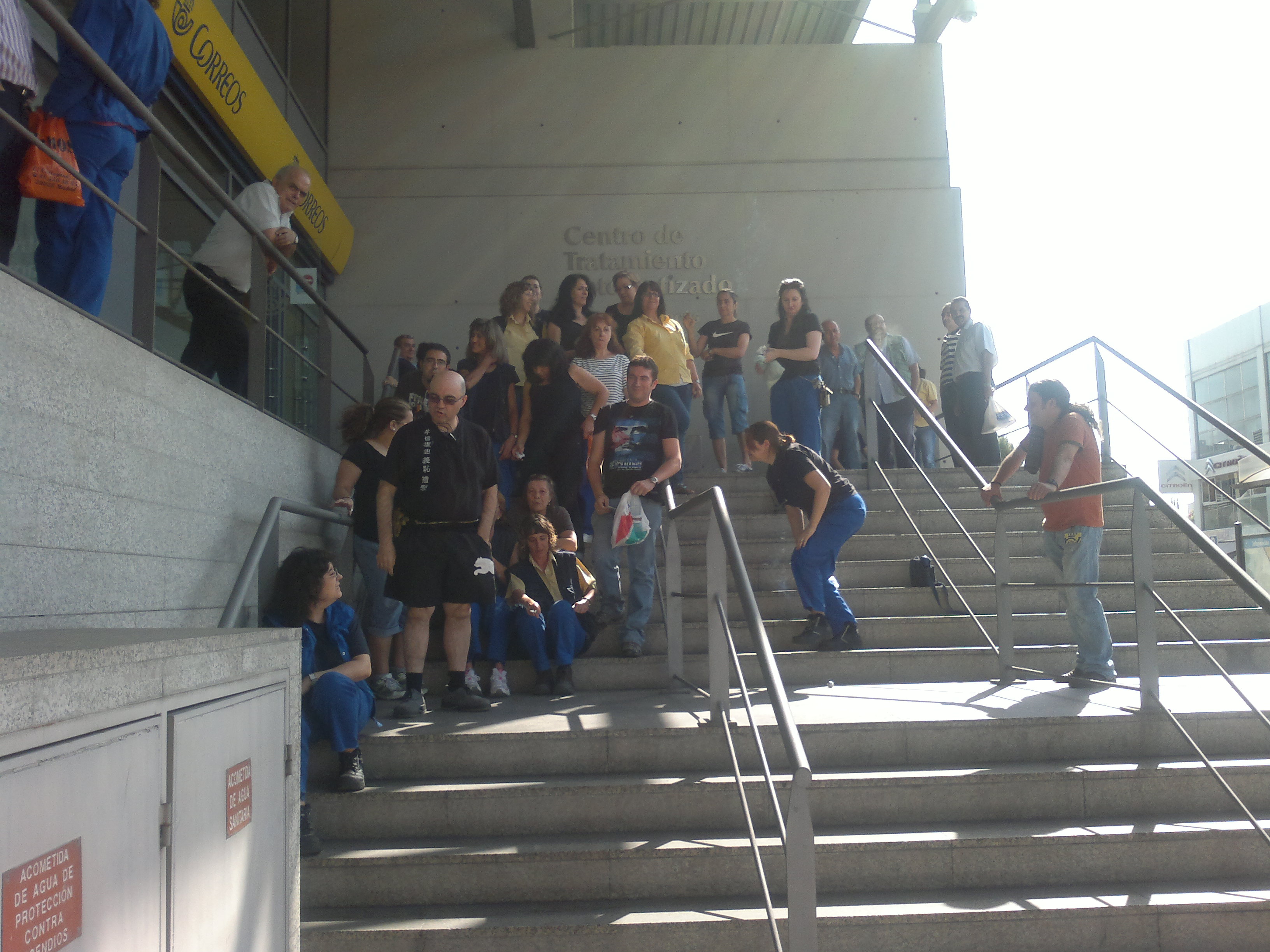 Cómo empieza a ser habitual en muchos lugares de la administración l@s trabajador@s hacen paros de 15 minutos para mostrar su descontento por los recortes del gobierno. En el CTA de Madrid todos los viernes salen a la calle.