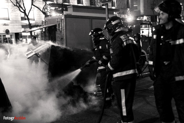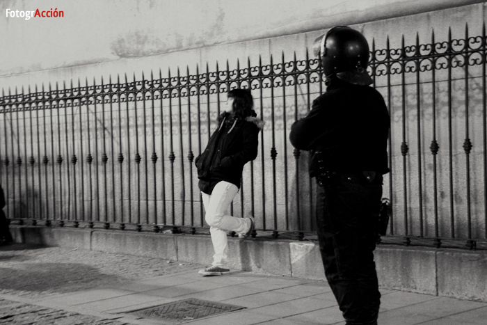 Ya nada se puede decir de las reclamas de la protesta social, solo se puede hablar de la violencia en las calles. No hay sitio para nada más. No hay recortes que hoy siguen privándonos de una educación y sanidad públicas y de calidad. No hay estafas legales con las preferentes de Bankia. No hay reformas laborales que llevan al trabajador al s.XIX. No hay corrupción. No hay un gobierno elegido democráticamente que se ha saltado hasta la última coma del programa que le llevó a la Moncloa. De hecho, ni siquiera hoy hay sitio para hablar de las agresiones a la prensa. Hoy solo hay sitio para hablar de lo violento que es el pueblo. Fuente: Fotogracción