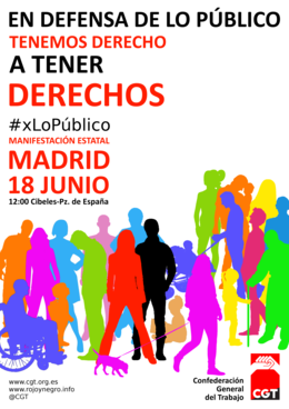 del Derecho a la Sanidad Pública universal y de calidad. del Derecho a una Educación Pública para todos y todas que nos forme en libertad y con sentido crítico. del Derecho a que nuestras personas Dependientes (personas mayores, niños y niñas, personas enfermas y solas), sean cuidadas para que puedan tener una calidad de vida digna. del Derecho a Pensiones Públicas suficientes para todos y todas. del Derecho a que en nuestras ciudades, en nuestros pueblos, los servicios públicos de Limpieza, Agua, Energía, Vivienda, Asuntos Sociales, Medio Ambiente, Educación Infantil, Información y Comunicación, Transportes, etc. sean prestados y atendidos por empresas públicas, donde la suficiencia y la eficiencia de estos servicios, se garanticen siempre. del Derecho a una Comunicación Pública (Radios, Correos, Televisiones, Prensa…) para todas las personas, que garantice la libertad de expresión y una información libre desde el interés común y general. del Derecho a una Renta Básica garantizada para todos y todas.