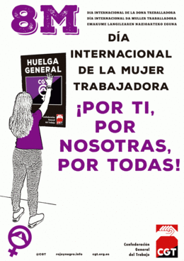 Este 8M de 2019, asumiendo los argumentos y principios antipatriarcales, anticapitalistas y antirracistas, volvemos a convocar una nueva Huelga General de 24 horas contra todos los abusos del sistema neoliberal, capitalista y patriarcal, basada en cuatro ejes fundamentales: