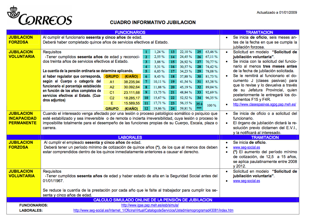 Cuadro informativo de jubilaciones.
