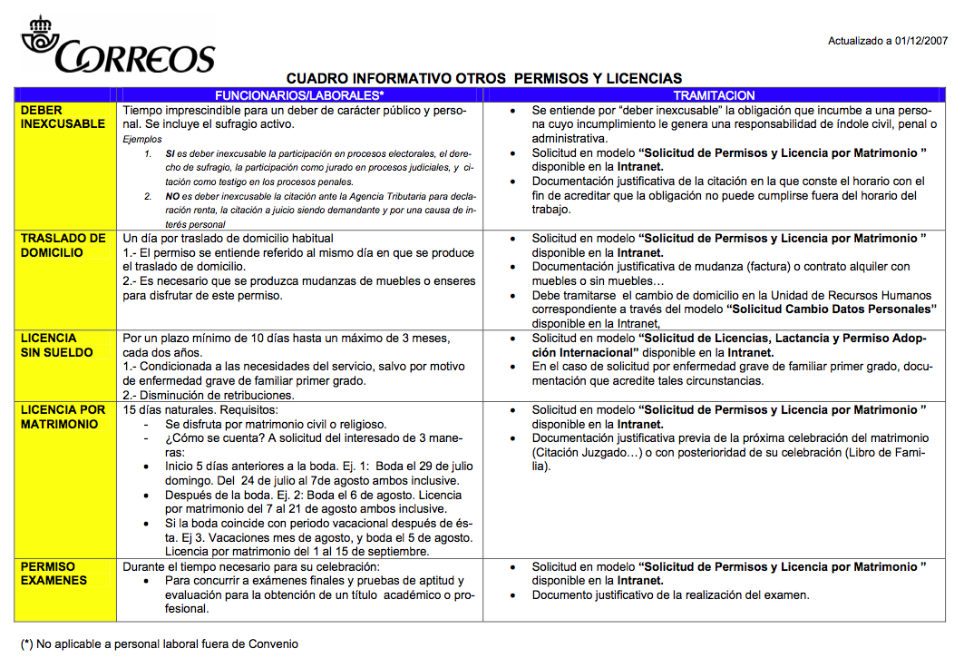 Ver formulario de solicitud de licencias, lactancia y adopción internacional Ver formulario de solicitud de permisos y licencia por matrimonio.