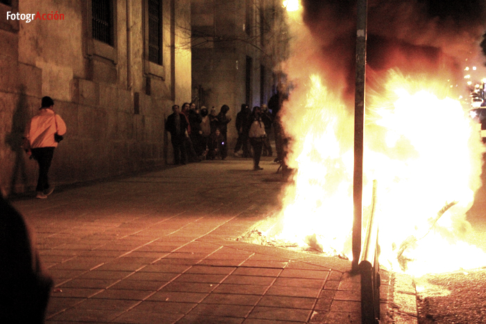 Ya nada se puede decir de las reclamas de la protesta social, solo se puede hablar de la violencia en las calles. No hay sitio para nada más. No hay recortes que hoy siguen privándonos de una educación y sanidad públicas y de calidad. No hay estafas legales con las preferentes de Bankia. No hay reformas laborales que llevan al trabajador al s.XIX. No hay corrupción. No hay un gobierno elegido democráticamente que se ha saltado hasta la última coma del programa que le llevó a la Moncloa. De hecho, ni siquiera hoy hay sitio para hablar de las agresiones a la prensa. Hoy solo hay sitio para hablar de lo violento que es el pueblo. Fuente: Fotogracción