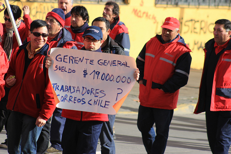 Esta gravosa carga laboral la soportan los trabajadores con los sueldos más bajos de la adminitración pública, a diferencia del gerente Pablo Montaner que gana 11 millones de pesos y junto a él hay una gran cantidad de personas que recibe sueldos igualmente millonarios en cargos absolutamente inoficiosos y que en poco tiempo se desvinculan de Correos de Chile haciéndose pagar indemnizaciones que son verdaderas burlas para quienes, con su trabajo, sostienen esta empresa fiscal.